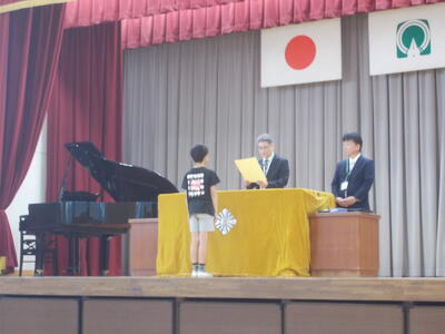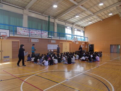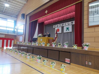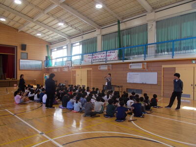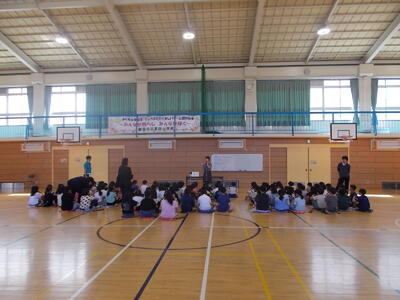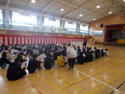 校長先生のお話の後、生徒指導担当の先生から、年間及び4月の生活目標についてのお話がございました。