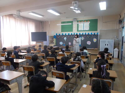 わくわくドキドキのなか、学級担任の発表があり、担任の先生が、教室に入ってきました。