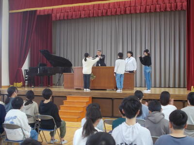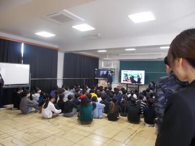 6時間目は、図書閲覧室で生徒会による第三中学校についてのお話がありました。