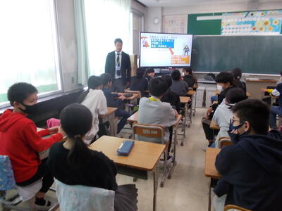 6年生が、第三中学校の先生の授業をそれぞれの教室で受けました。