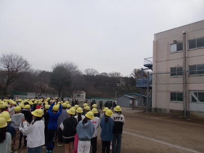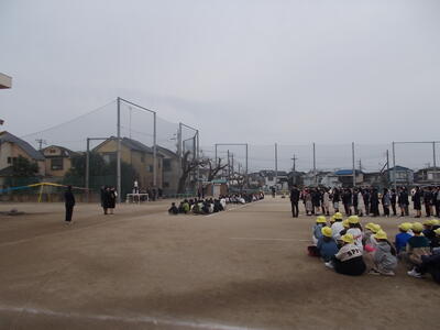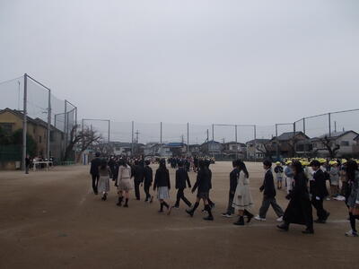 校庭で6年生と在校生がお別れをしました。